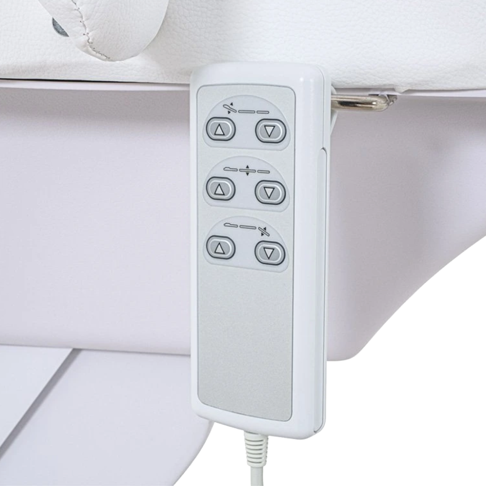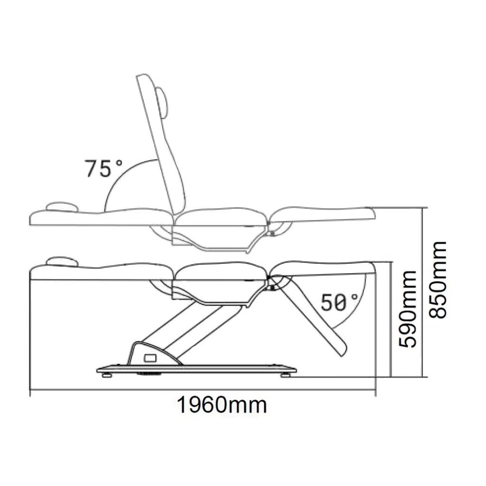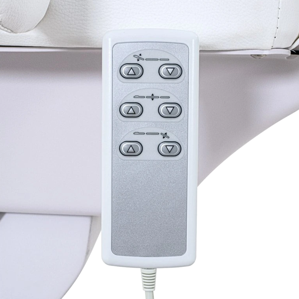 Výhodou kozmetického kresla je jeho minimálna výška 59 cm, čím prispieva ku komfortnému nasadaniu aj nižším alebo starším klientom. Kozmetické kreslo je vybavené 3 výkonnými motormi, ktoré umožňujú plynulo a spoľahlivo nastaviť výšku sedadla v rozmedzí od 59 do 85 cm, polohu opierky nôh do -50 stupňov a opierky chrbta do 75 stupňov. Polohovanie je ovládané ručným spínačom, ktorý je súčasťou balenia.